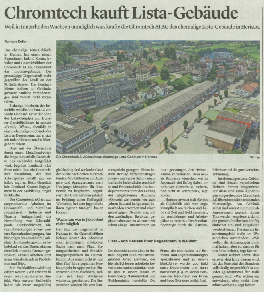 Chromtech AG kauft ehem. LISTA-Gebäude