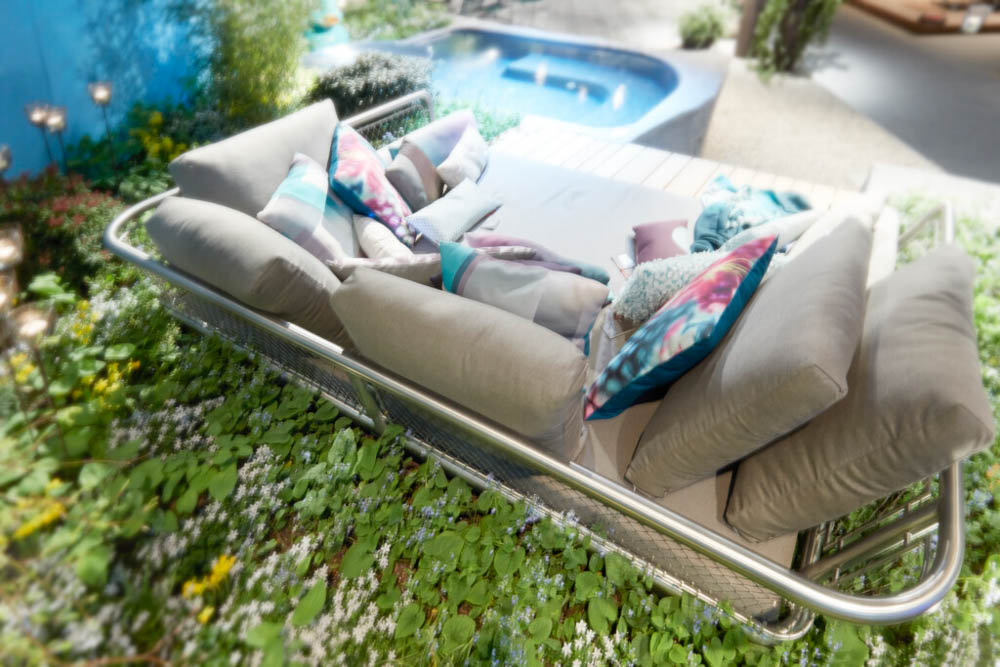 Die wetterfesten Kissen und Matratze runden die ganze Sache perfekt ab.